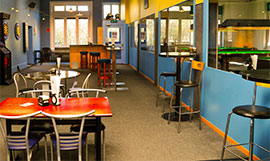 11 Brunswick Gold Crown Pooltische sorgen für eine professionelle Atmosphäre.
